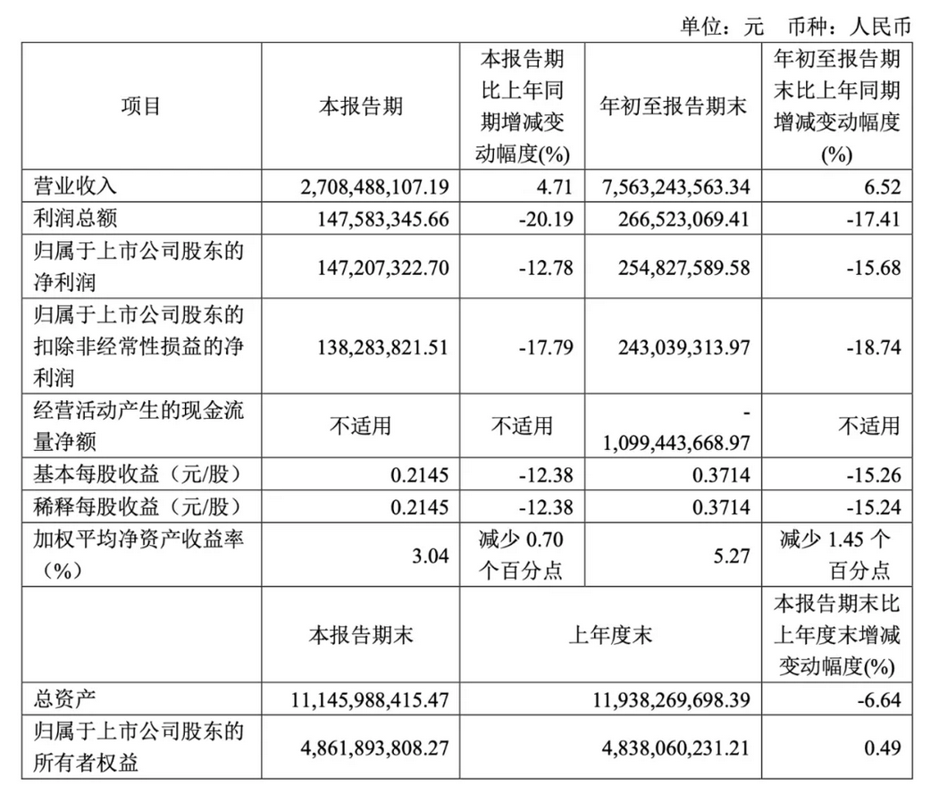 电科数字发布2025年第三季度报告:2025年前三季度,公司实现营业收入75.63亿元,同比增长6.52%;实现归属于上市公司股东的净利润2.55亿元,同比减少15.68%;实现归属于上市公司股东的扣除非经常性损益的净利润2.43亿元,同比减少18.74%。